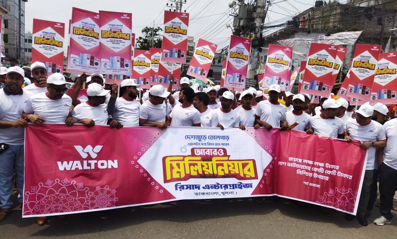 ঈদ উৎসব উপলক্ষ্যে খুলনায় অনুষ্ঠিত হয়েছে দেশের ইলেকট্রনিক্স জায়ান্ট ওয়ালটনের ডিজিটাল ক্যাম্পেইন সিজন-২২ এর ‘আবারো মিলিয়নিয়ার’ ক্যাম্পেইনের ব্র্যান্ডিং কার্যক্রম। একইসঙ্গে দেশব্যাপী আনন্দ র্যালি করেছে ওয়ালটন। দেশের ৭ শতাধিক ওয়ালটন প্লাজায় মেডিক্যাল ক্যাম্পে দেয়া হয়েছে ফ্রি চিকিৎসাসেবা।
